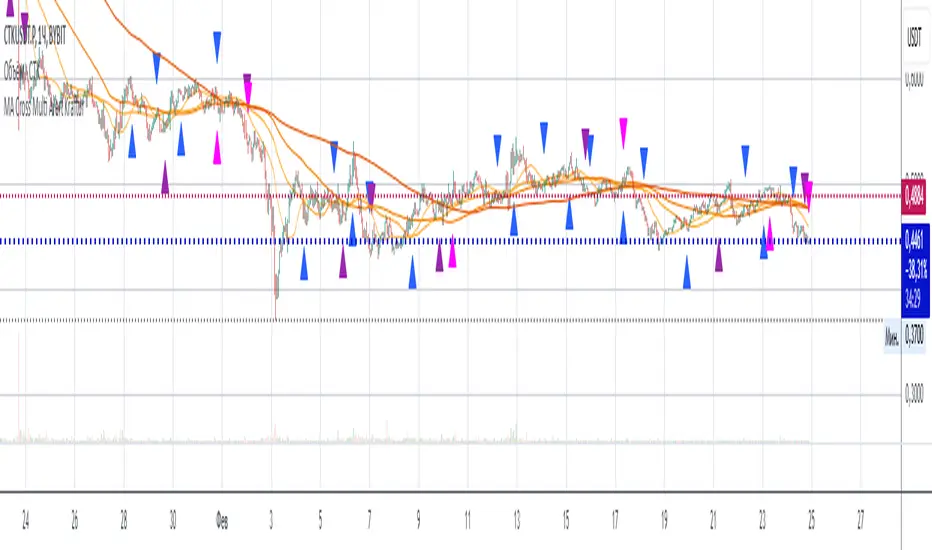 The "MA Cross Multi Alert Kraftur" indicator is a versatile tool designed to help traders identify potential buy and sell opportunities based on the crossings of multiple moving averages (MAs). Unlike traditional MA crossover indicators that focus on a single pair of averages, this script offers three distinct crossover levels (e.g., 21/50, 50/90, 50/200) for greater flexibility and precision. It overlays signals directly on the price chart and delivers real-time alerts when crossings occur, making it an excellent choice for traders seeking to pinpoint entry and exit points across various market conditions.