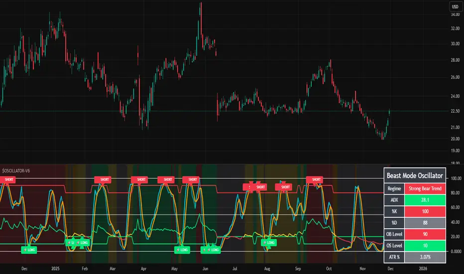 Beast Mode Adaptive Oscillator V6 is a high-precision, regime-aware momentum engine that adapts dynamically to market conditions.