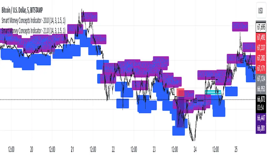 The **Smart Money Concepts Indicator** is designed to enhance trading decisions by incorporating key principles from Smart Money Concepts (SMC), focusing on the detection of market structure changes, liquidity zones, order flow, and order blocks. This indicator is particularly useful for traders looking to understand market dynamics and make informed trading decisions based on advanced market analysis.