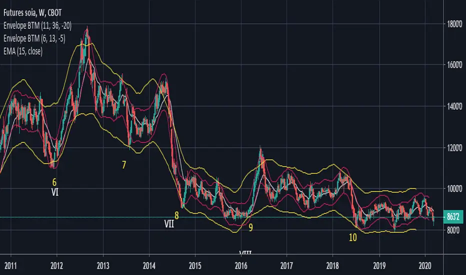Studi cicli? Questo fa per te, le bande che altro non sono due medie mobili, tengono il prezzo alle due estremità (in alto e in basso).