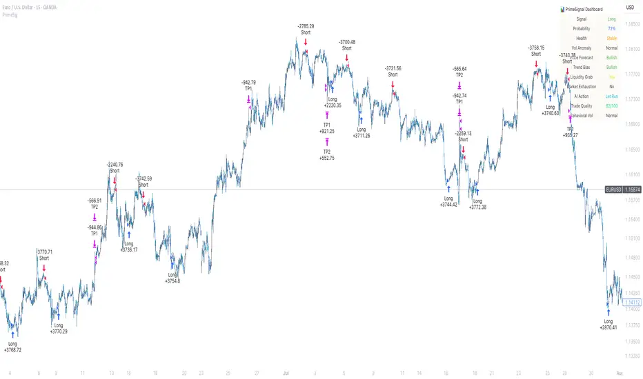 PrimeSignal Pro is a premium-grade, AI-augmented trading system tailored for professionals. It combines advanced multi-timeframe analysis, dynamic volume behavior modeling, and precision signal tracking—delivered through a luxury-grade customizable dashboard.