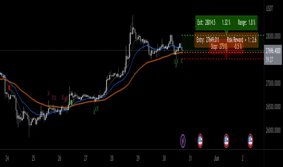 It will signal crosses between EMA's and potential Entry Signals for Longs & Shorts.