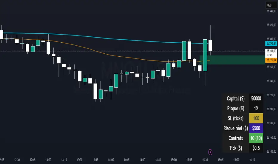 You must first enter your capital and your risk percentage. Then, when you specify your stop-loss size in ticks, the indicator will immediately tell you the number of contracts to use to stay within your risk percentage.