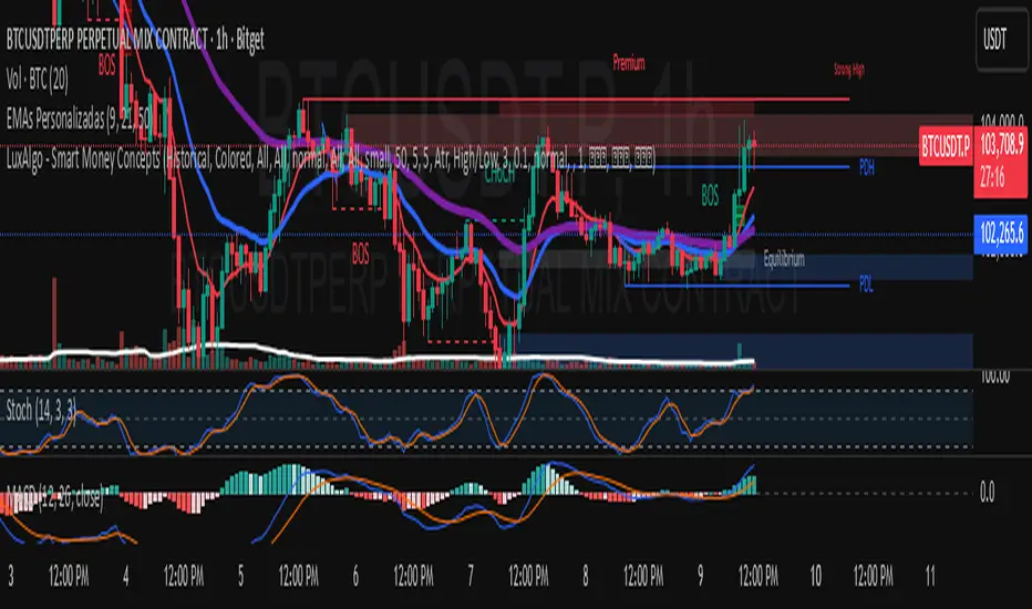 It consists of 3 EMAs, each of which can be customized — you can change colors, thickness, and periods according to your trading strategy to save space on the indicators.
