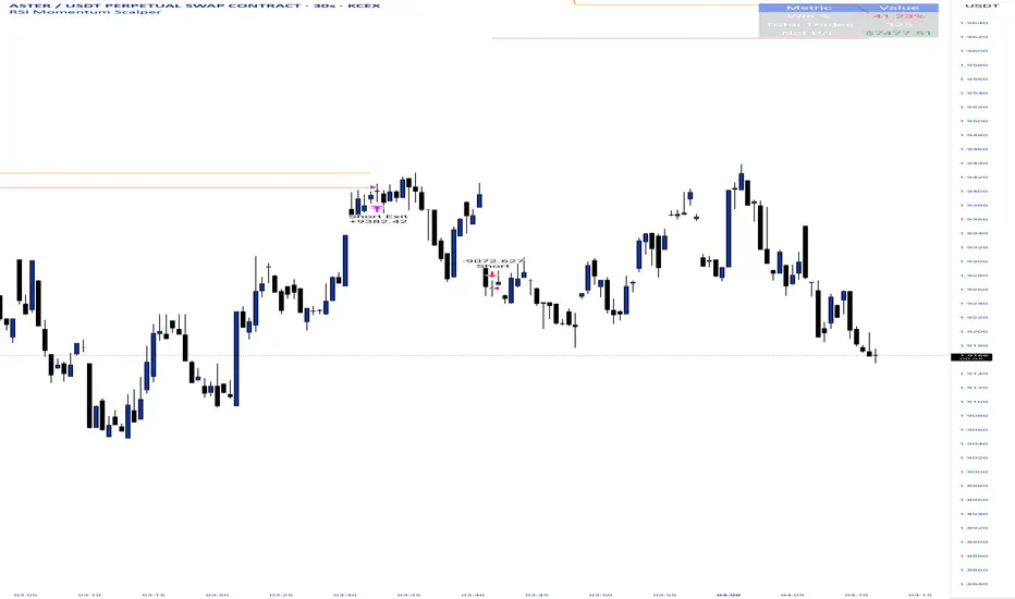 I developed the "RSI Momentum Scalper" because I was seeking a reliable trading strategy tailored to newly listed, highly volatile cryptocurrencies. These assets often experience rapid price fluctuations, rendering traditional strategies less effective. I aimed to create a tool that could exploit momentum and volume spikes while managing risk through adaptable exit parameters. This strategy is designed to address that need, offering a flexible approach for traders in dynamic crypto markets.
