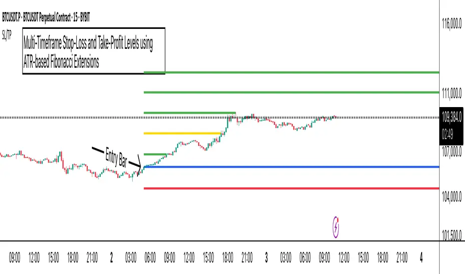 This comprehensive indicator combines Average True Range (ATR) volatility analysis with Fibonacci extensions to create dynamic stop-loss and take-profit levels. It's designed to help traders set precise risk management levels and profit targets based on market volatility and mathematical ratios.