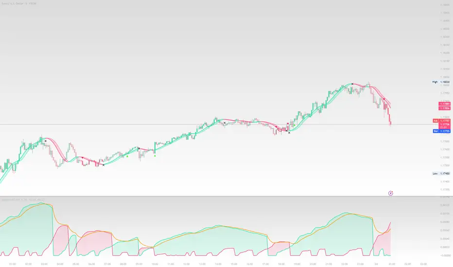 Andean Regime Toolkit (Osc + Signals) is a lightweight “pressure + regime” indicator built around the widely shared Andean-style idea of measuring bullish vs bearish price variation using exponential envelopes on price and squared price. The goal here isn’t to reinvent the concept — it’s to package it into an easy, practical toolkit you can actually use on a live chart, with clean visuals and optional on-chart helpers.