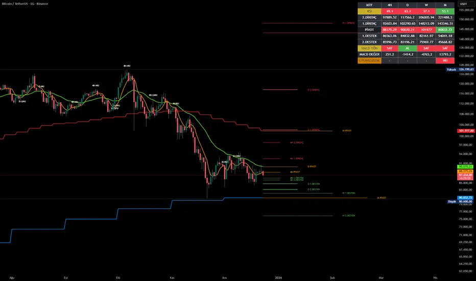 MTF Support & Resistance: Automatically draws dynamic S/R lines for 4 different timeframes.