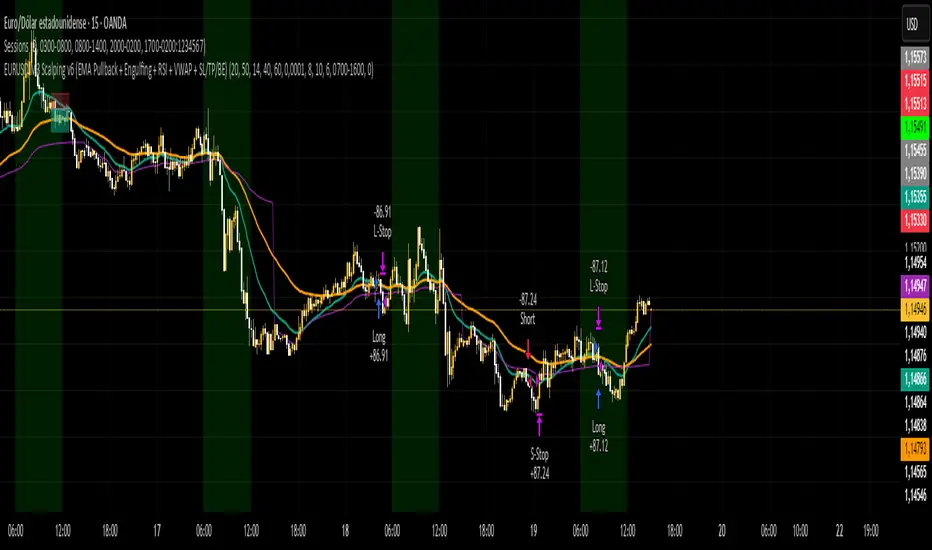 Estrategia para operar el EURUSD en temp de 3 min, indica sl y tp 6 pips sl y 10 pips tp