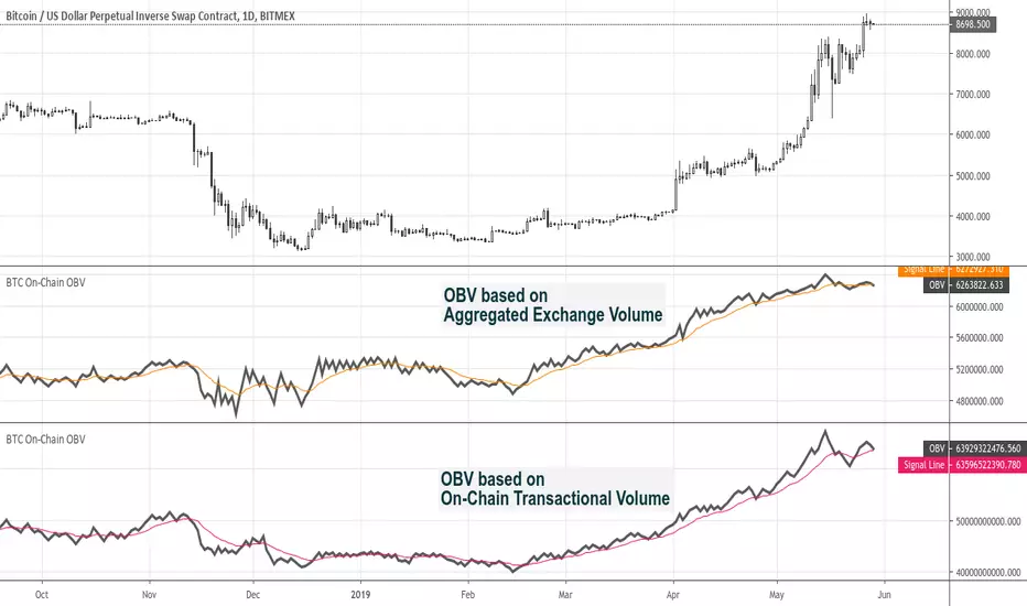 The Bitcoin On-Chain OBV is a port of the classical volume oscillator that reflects the accumulation registered through the On-Chain Transactions.