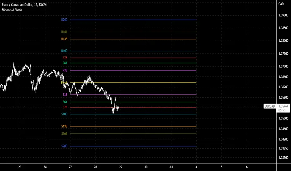A better version of the Fibonacci Pivot Points . I added 100, 138, 161 and 200 support/resistance pivots , lookback function and now you can use daily/weekly/monthly/yearly fibonacci pivot points .