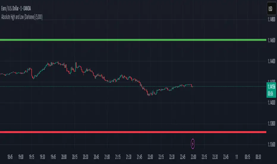 These price levels are plotted using thick green and red lines, respectively, and are updated dynamically as new highs or lows are set.