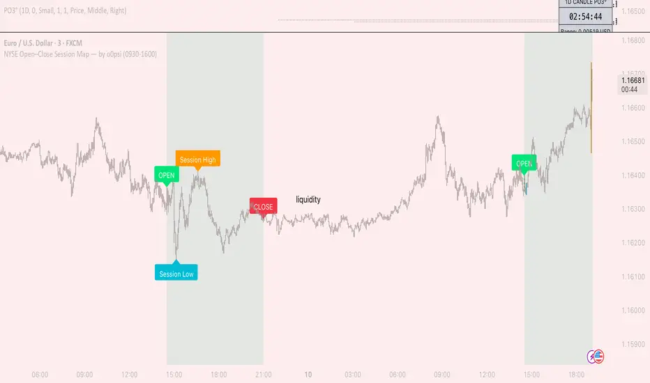 This tool marks the exact candles where the New York Stock Exchange opens and closes, and automatically tracks the true session high and low.
