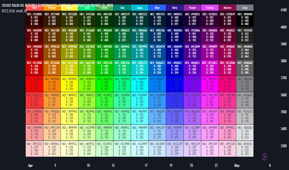 - Cell can be show either Full, HEX, RGB, R, G, B or na.