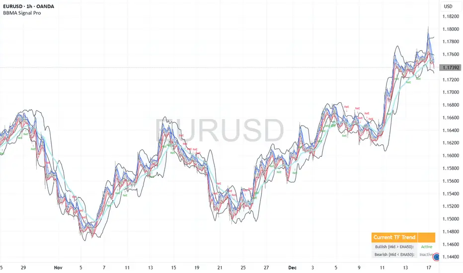 BBMA Signal Pro is a professional BBMA (Bollinger Band + Moving Average) cycle indicator designed to identify structure, momentum, and continuation — not random signals.
