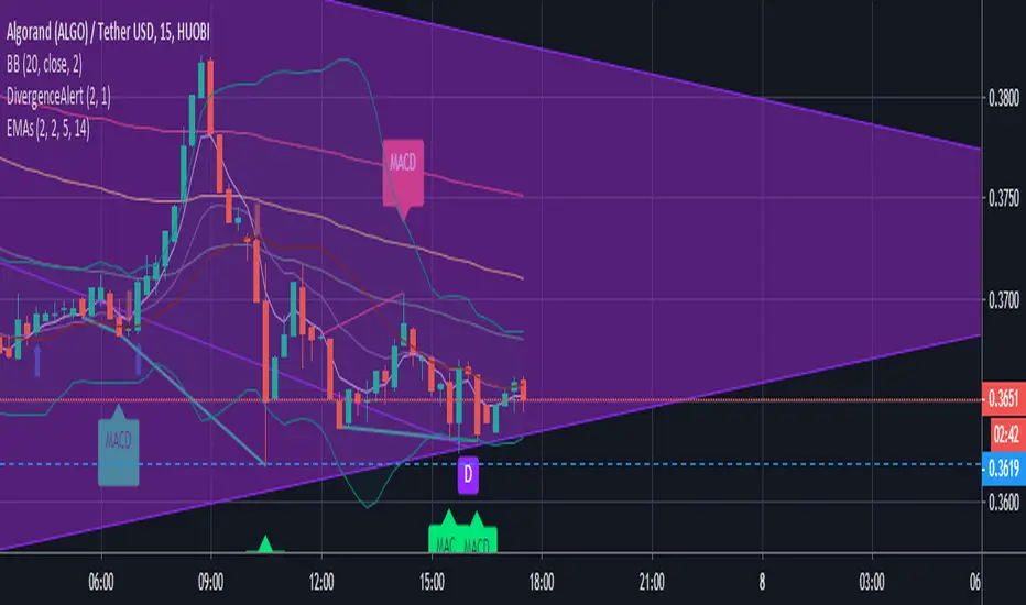 Show divergences and directions based on H&L and emas 5/14/50/100/200/400.