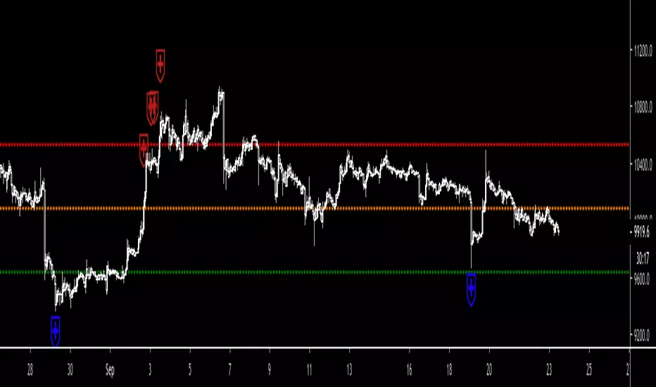 On chart DYNAMIC horizontal Oversold / Overbought oscillator levels.