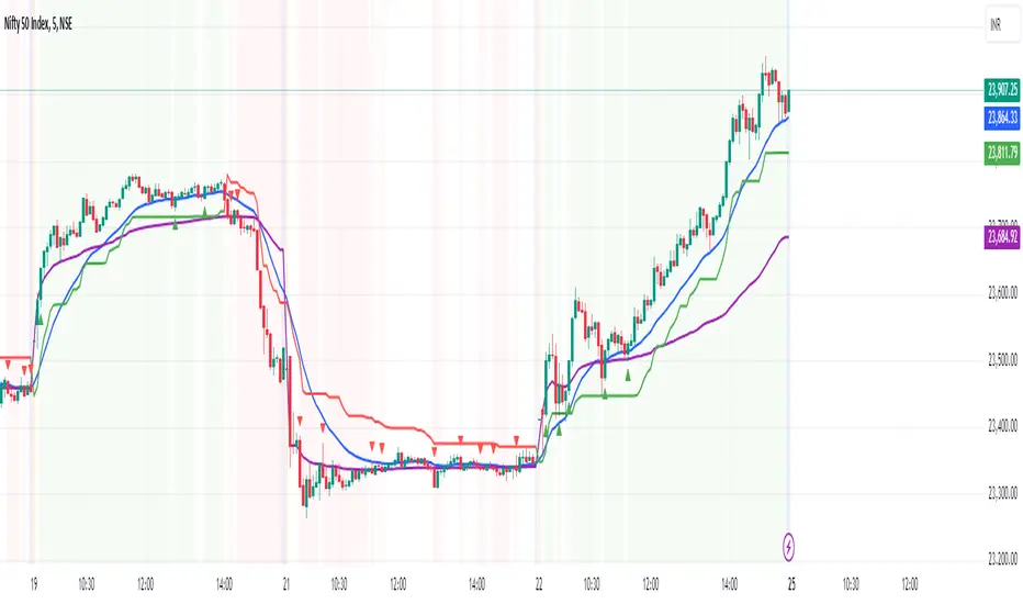 This indicator combines three powerful technical indicators (EMA, VWAP, and SuperTrend) to create a comprehensive trading system that helps identify high-probability trading setups when all components align.