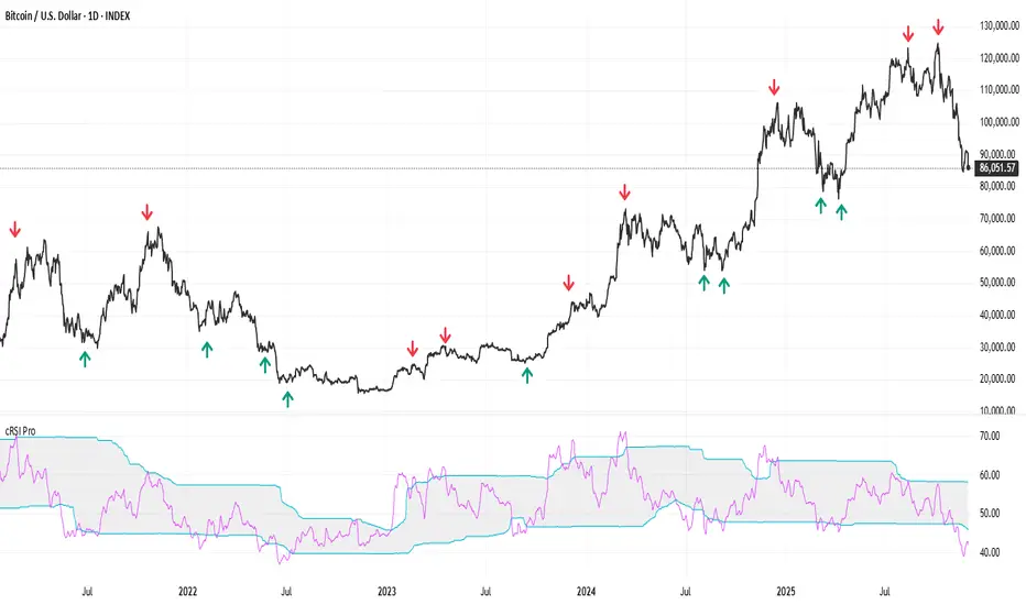 This is the actively maintained and continuously enhanced edition of my free, open-source indicator “RSI Cyclic Smoothed v2” which was recognized with a TradingView Editors’ Pick. The Pro Version will remain fully up to date with the latest Pine Script standards and will receive ongoing refinements and feature improvements, all while preserving the core logic and intent of the original tool. The legacy version will continue to be available for code review and educational purposes, but it will no longer receive updates. The legacy open-source version is here