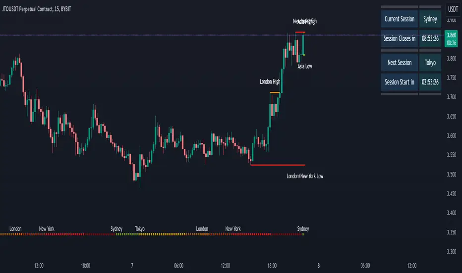 - Analyze active and historical session highs/lows to plan trades around key liquidity zones.