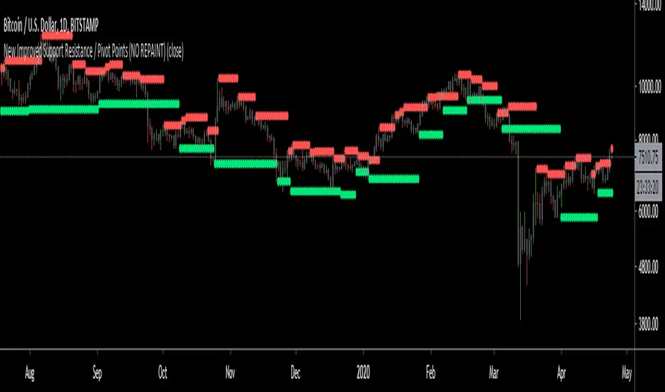 Aktualisiert New Improved Support Resistance / Pivot Points (NO REPAINT)