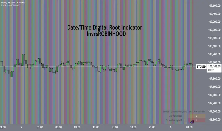 Uncover the hidden numerical rhythm of the markets with the Time/Date Digital Root Indicator. This unique tool is designed for traders who look beyond standard price and volume, exploring the cyclical and vibrational nature of time itself. It translates the essence of any time and/or date into a single-digit number from 1 to 9—its "Digital Root"—providing a novel layer of analysis for your charts.