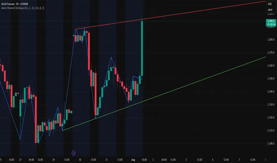 Auto Channel [SciQua] finds the single best parallel price channel from recent price action and keeps it updated in real time. It uses ZigZag pivots to build candidate channels, scores each candidate for quality, then plots the winner. When price closes outside the channel, the script flags a breakout and can fire alerts.
