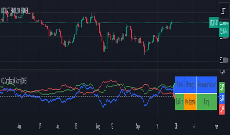The Qualitative and Quantitative Candlestick Score [CHE] is a powerful indicator for TradingView that combines both qualitative and quantitative analyses of candlestick patterns. This indicator provides traders with a comprehensive assessment of market conditions to make informed trading decisions.