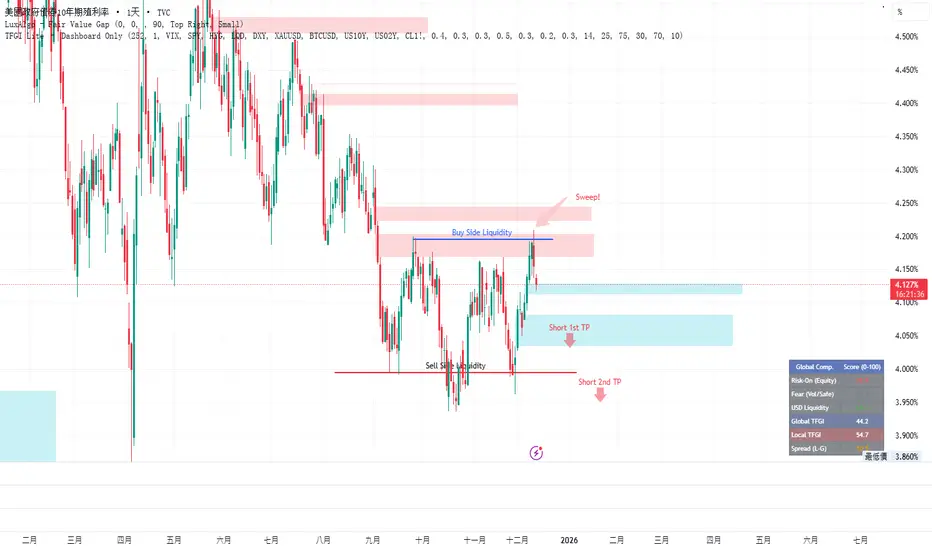 Global TFGI (全球宏觀):全球資金的流向與風險偏好(綜合了美股、波動率 VIX、美元與債市)。這就像是「大盤天氣」。如果全球都在下雨(恐慌),您的股票也很難獨善其身。