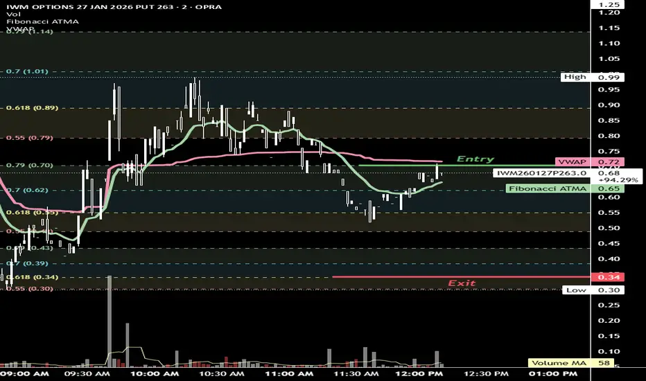 Fibonacci ATMA. An ATR-adjusted EMA. This is for use with fibonacci scales for day trading and swing trading.
