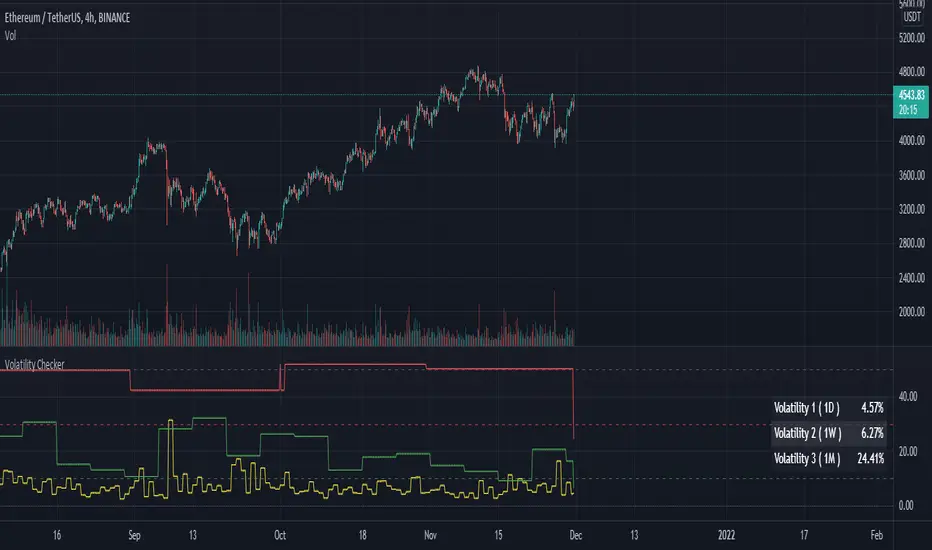Whenever we want to find out volatility of the current chart, we need to visit screener and check the latest percentage. Because of this frustration by visiting screener page, I made this script. And there is no script like this, so it's open and free to use.