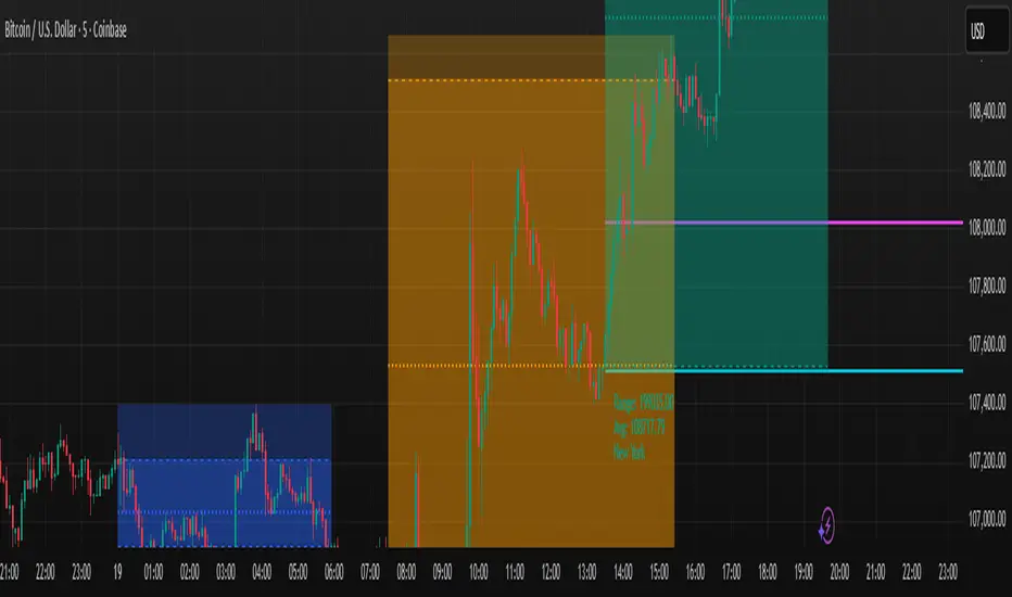 A working copy of the original Tradingview trading sessions indicator with the addition of horizontal lines marking the 15 minute opening range for your ORB strategy. The lines reset with each session start.