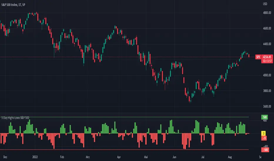 The script uses the M5HP and the M5LP index and subtracts the second from the first. So you can see how many stocks in the S&P 500 make new highs or new lows on a 5 days basis and see the trend of the market.