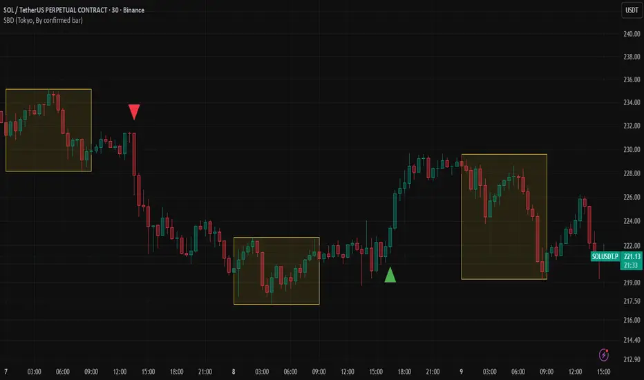 The Session Breakout Detector (SBD) is a TradingView indicator designed to identify and visualize breakouts from major trading sessions. It tracks a selected session (Tokyo, London, or New York) and detects price movements beyond the session's high or low, assisting traders in spotting potential breakout opportunities.