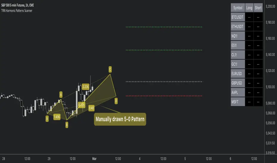 For a visualization of the detected patterns, you can add the TRN Harmonic Patterns Suite indicator to your chart.