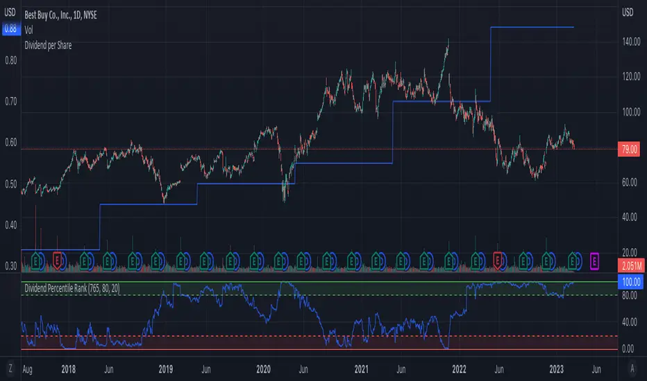 The Dividend Percentile Rank is plotted as an oscillator that oscillates between 0 and 100.