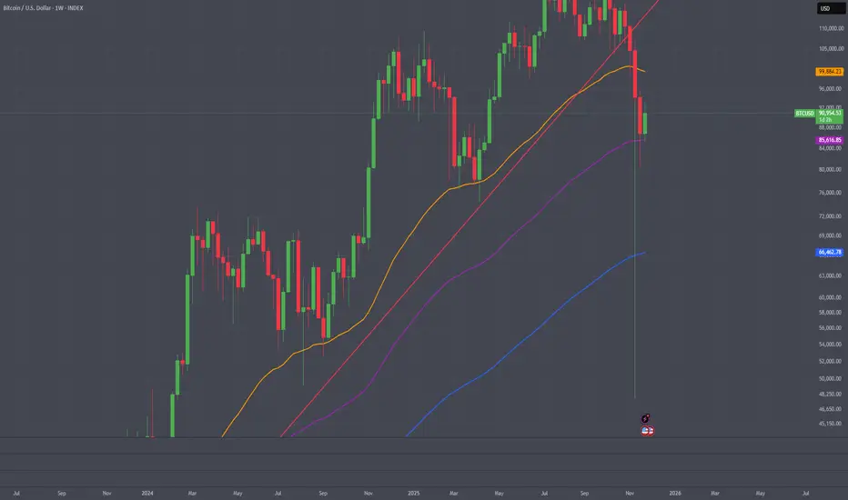 Clean, multi-timeframe weekly moving average indicator displaying the classic 50, 100, and 200-week MAs directly on any chart timeframe.