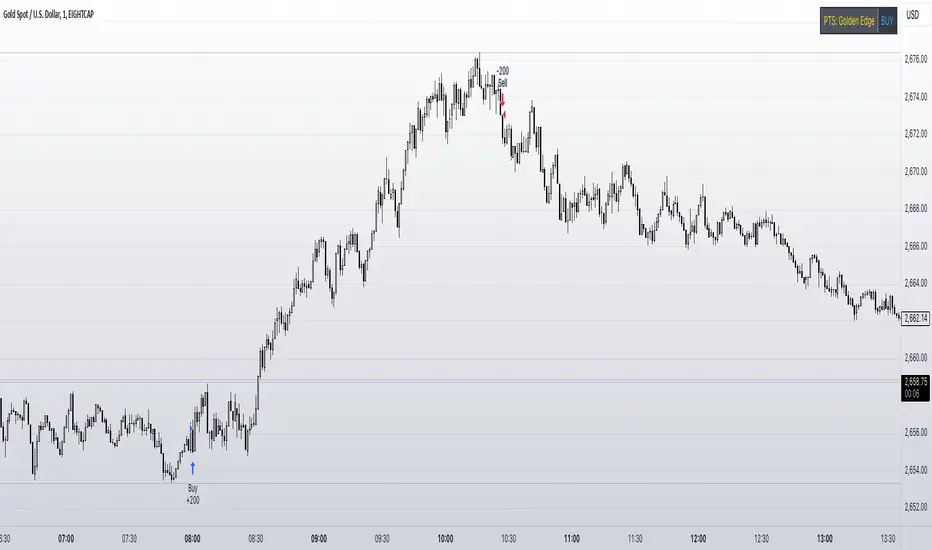 The PTS: Golden Edge strategy is designed for scalping Gold (XAU/USD) on lower timeframes, such as the 1-minute chart. It captures high-probability trade setups by aligning with strong trends and momentum, while filtering out low-quality trades during consolidation or low-volatility periods.