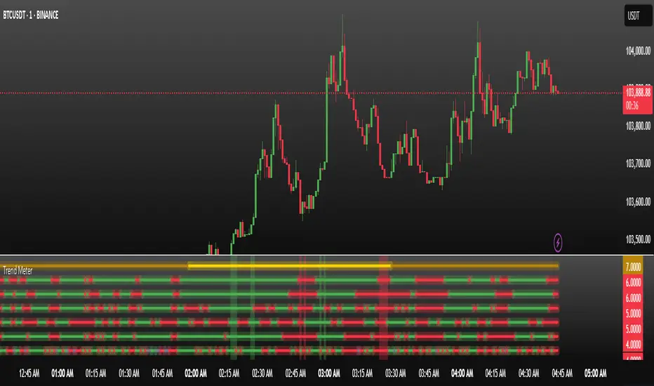 The 7-Channel Trend Meter offers an all-in-one confirmation system that combines 7 high-accuracy indicators into one easy-to-read visual tool. Say goodbye to guesswork and unnecessary tab-switching—just clear, actionable signals for smarter trades. Whether you're trading stocks, crypto, or forex, this indicator streamlines your decision-making process and enhances your strategy’s performance.