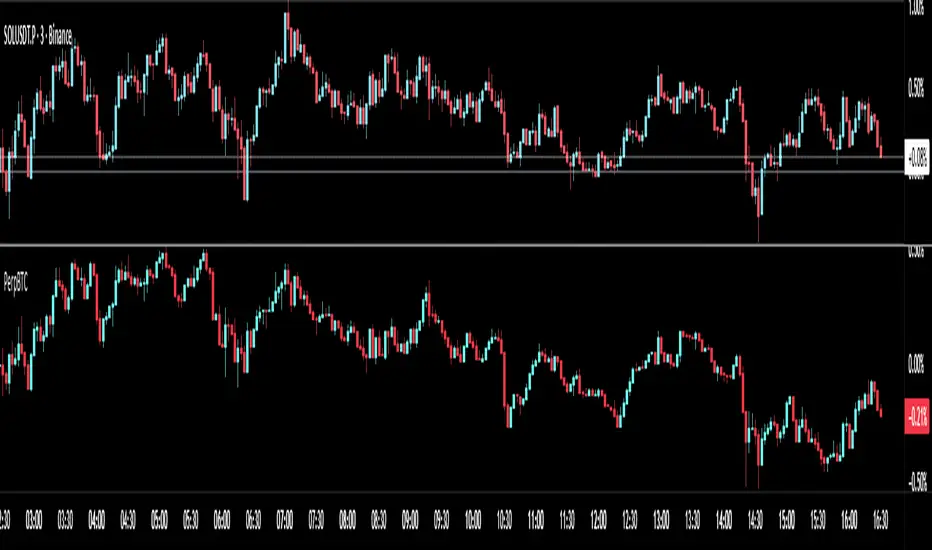 将个别虚拟币走势与BTC的走势进行比较。打开个别币的K线,添加在下方的panel里添加本指标即可。Compare the price movement of individual cryptocurrencies with that of BTC.