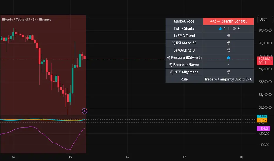 very simple dashboard align with fish and shark market votes 1/5 2/4 etc