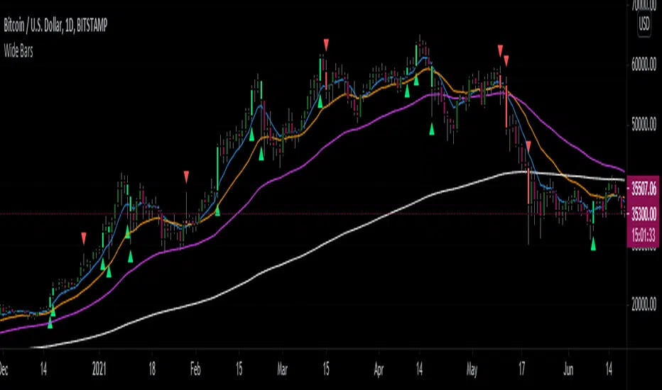 Simple scripts show the wide range bars within in the look back period, visualizing the bigger momentum.