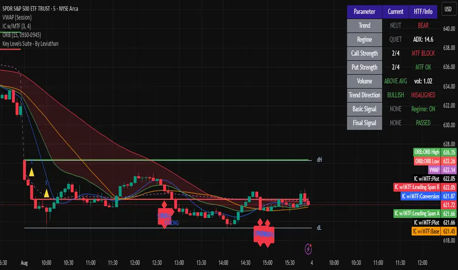 combines traditional Ichimoku Cloud analysis with multi-timeframe trend filtering to generate high-probability trade signals