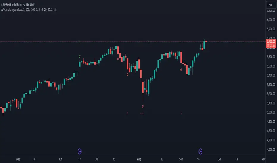 An indicator that calculates click (price change), percentage change, and Z-score changes while displaying outliers based on defined ranges.