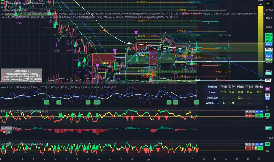 Smart Multi-TF Stochastic is a multi-layer momentum analysis system built on top of Stochastic signals from several timeframes. It combines four stochastic timeframes (15m / 1H / 2H / 4H), Premium–Equilibrium–Discount zones, dynamic weight reallocation, and adaptive smoothing into a single SMART oscillator that reflects the real market structure with higher accuracy.