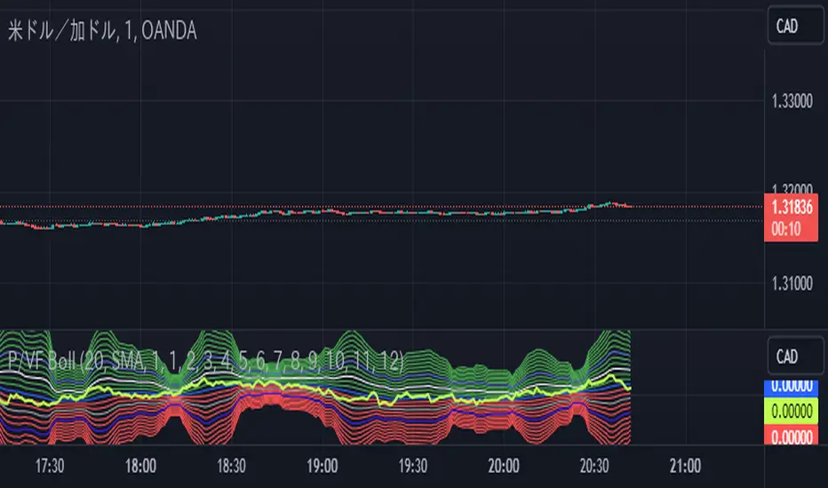 This code draws a custom indicator named "P/VF Boll" on the price chart with the following visual elements: