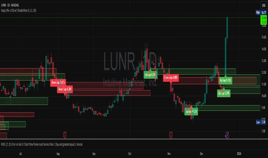 This indicator identifies up and down Gaps using previous period's close price to the next period's open price. Potentially useful for Gap rebound strategies.