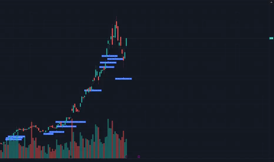 This indicator plots the dates and titles of official Iris Energy (IREN) press releases directly on the daily price chart.