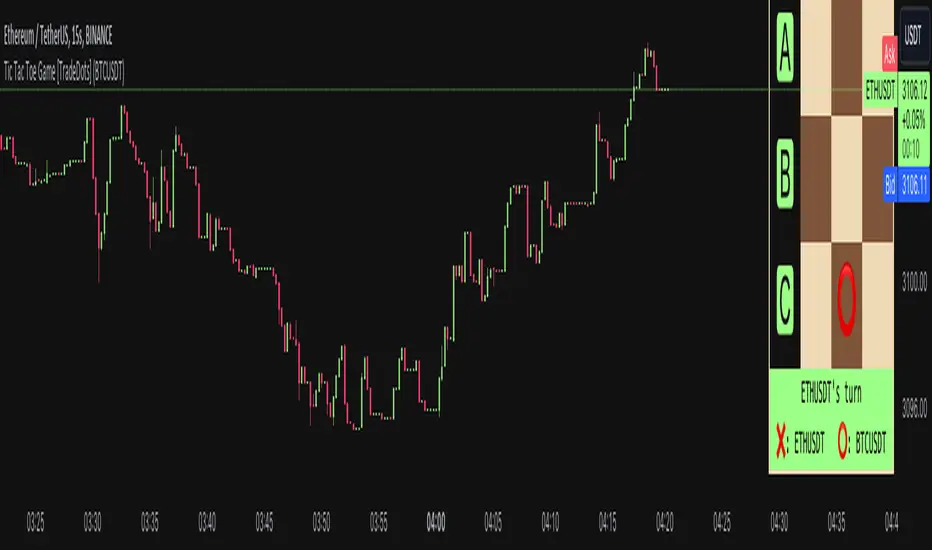 The Tic Tac Toe game transforms your chart into a competitive playground where trading pairs face off in a classic game of Tic Tac Toe.