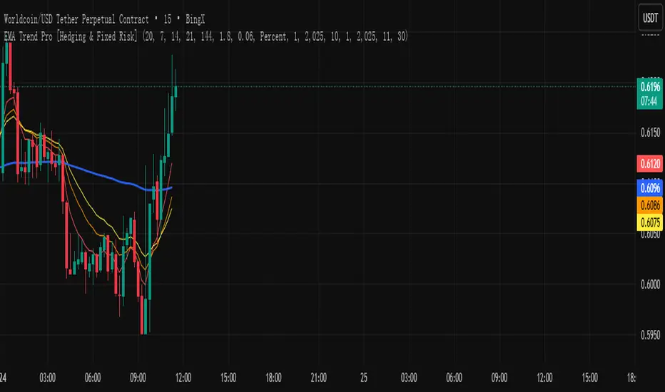 Long Entry: EMA 7 > EMA 14 > EMA 21 > EMA 144 (Bullish Alignment).